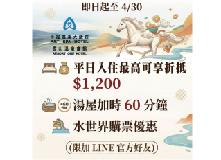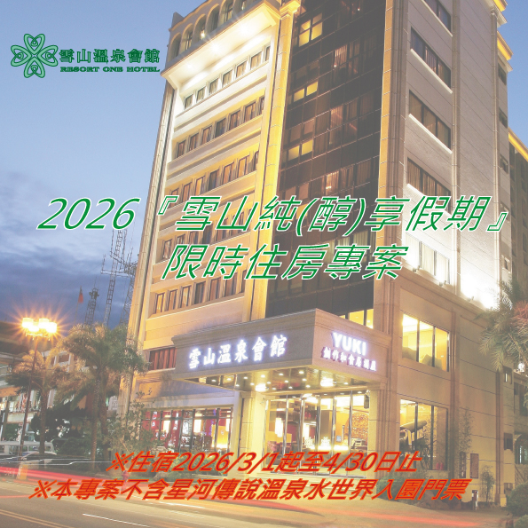 ※注1.三月份配合飯店維護工程,星河傳說溫泉水世界”室內池”有工程進行暫停使用,施工期間上午八點過後至下午五點有施工聲響,造成不便,敬請見諒,每月另有設施定期維護日期不對外開放,詳情請上官網查詢,未盡詳述事宜依飯店規定為主。
