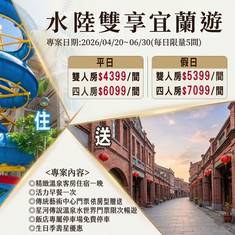 ※7歲(含)以上不佔床收費$500元(提供早餐、SPA水世界門票、備品)。
