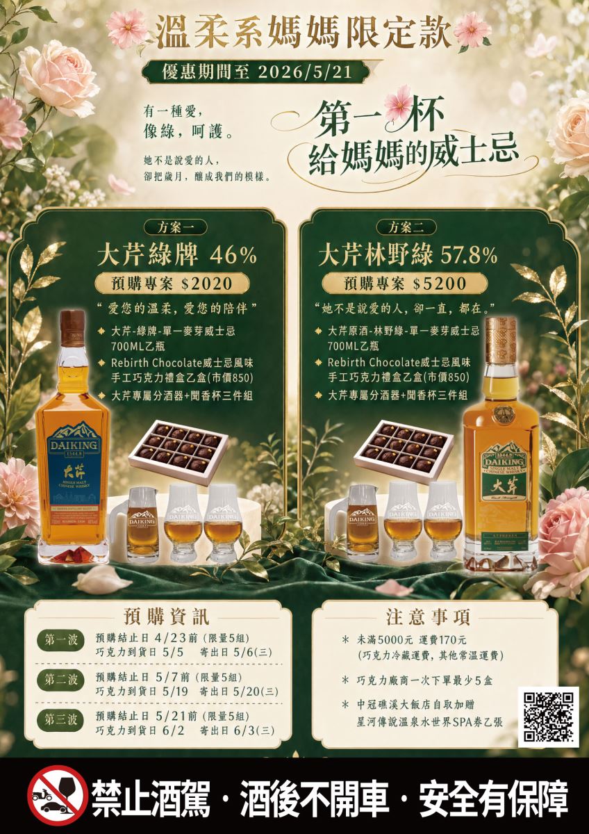 *活動地點:中冠礁溪大飯店一樓大芹威士忌專區